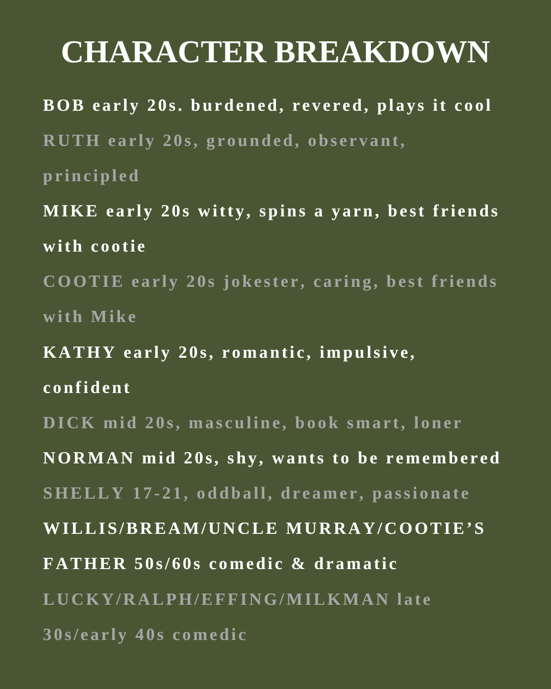 Callbacks February 17th 5:00pm - 8:00pm (cold readings from show)